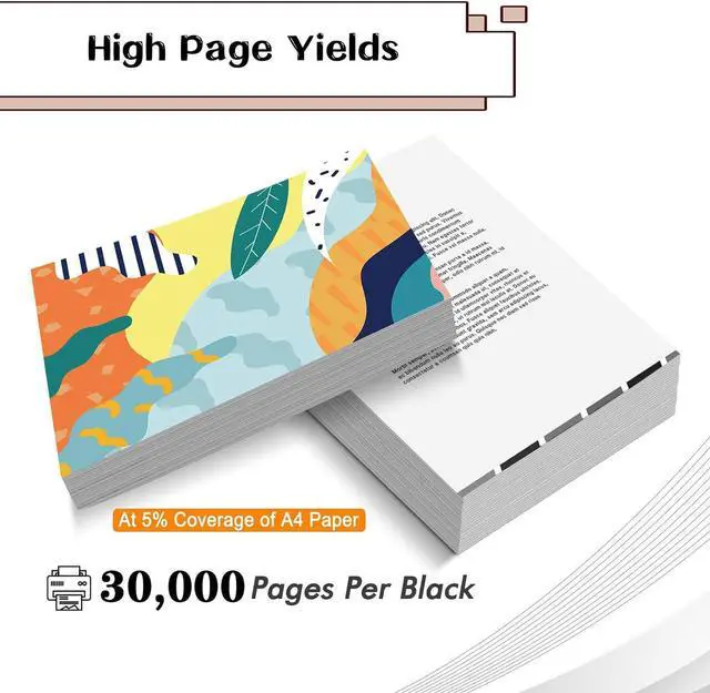 Our Toner Cartridge boast extended lifespans, 30,000 pages per Black cartridge (5% coverage on A4 paper), which reduces the frequency of cartridge replacements