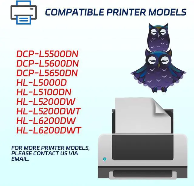 Widely compatible, applicable to multiple models: Our Toner Cartridge are highly compatible and compatible with Brother DCP-L5500DN DCP-L5600DN DCP-L5650DN HL-L5000D HL-L5100DN HL-L5200DW HL-L5200DWT HL-L6200DW HL-L6200DWT HL-L6250DW HL-L6300DW HL-L6400DW HL-L6400DWT HL-L6400DWX MFC-L5700DW MFC-L5705DW MFC-L5800DW MFC-L5850DW MFC-L5900DW MFC-L6700DW MFC-L6750DW MFC-L6800DW MFC-L6900DW MFC-L6900DWX printers. No matter what printing device you use, we can provide you with a suitable Toner Cartridge to ensure seamless docking and worry-free printing