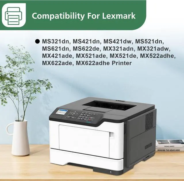 Compatible with Lexmark MS321dn, MS421dn, MS421dw, MS521dn, MS621dn, MS622de, MX321adn, MX321adw, MX421ade, MX521ade, MX521de, MX522adhe, MX622ade, MX622adhe Printer