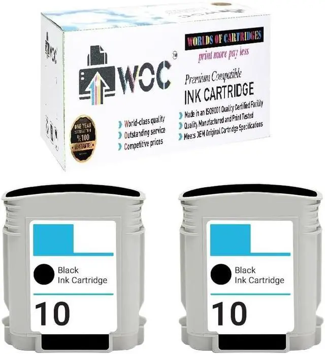 WOC Remanufactured Ink Cartridge Replacement for HP 10 (C4844A) (2-Pack: 2X Black) for Use in DesignJet 500/800 / 815/820 / CC800 (and More Devices)