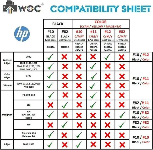 • For Use In: HP Business Inkjet 1000, 1100, 1200, 2200, 2230, 2250, 2280, 2300, 2600, 2800, 3000 & Color Inkjet 1700 & DesignJet 70, 100, 110, 500, 800, 815, 820, CC800 & Designjet Color Pro CAD, GA & Inkjet 2000, 2500 & OfficeJet 9100, 9110, 9120, 9130 & OfficeJet Pro K850, K850DN
