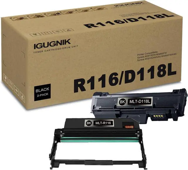 Include: 1 Pack Black MLT-D118L Toner Cartridges Compatible for Samsung MLT-D118L; 1 Pack Black MLT -R116 Drum Unit Compatible for Samsung MLT -R116.