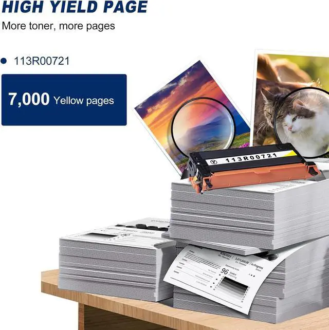 High Page Yield: Up to 7,000 pages per 113R00721 Yellow Toner Cartridge at 5% coverage (Letter/A4).