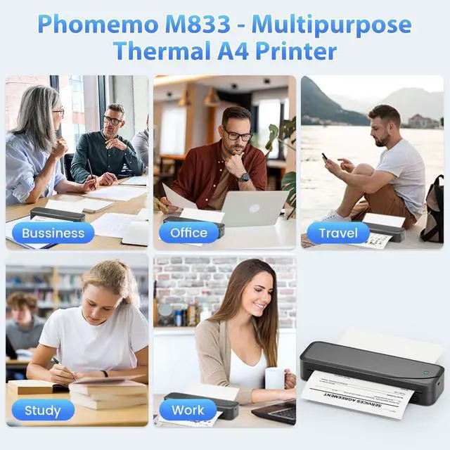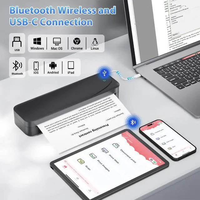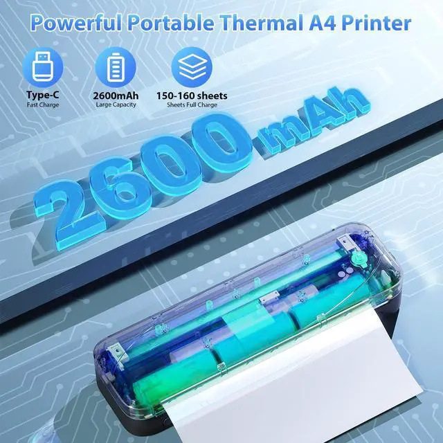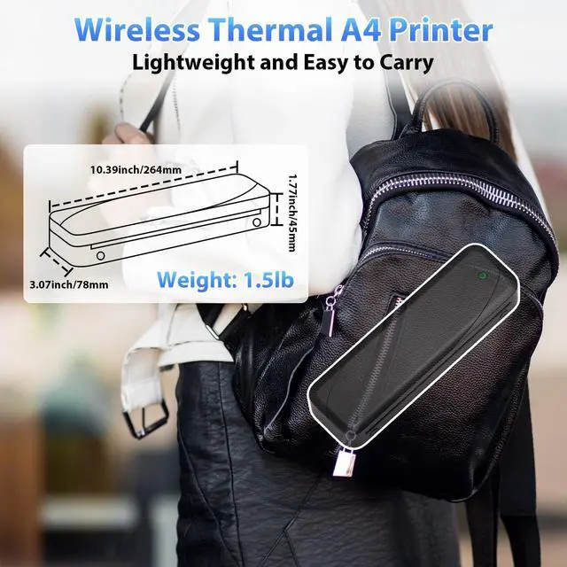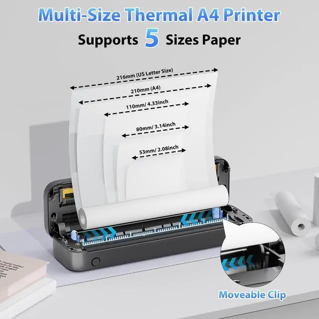 Inkless Portable Thermal Printer This wireless printer using direct thermal technology, instantly producing sharp prints on included US Letter/A4 thermal paper (10 sheets provided). Designed for home, office, or travel, it skips messy ink costs and maintenance. Compact and ready to use, it reliably handles documents, labels, lists, and more, but note: standard copy paper is not compatible.