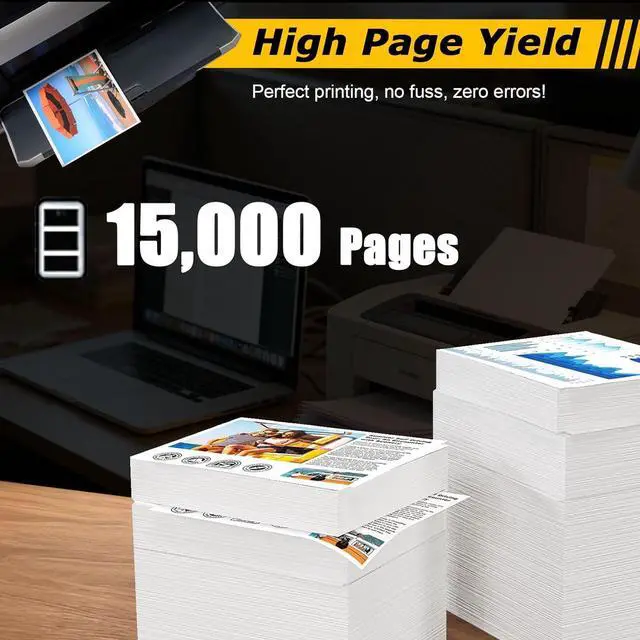 Reliability Longevity: Our Toner Cartridge with reliable printing lifespan. 15,000 pages per Black cartridge (5% coverage on A4 paper), which you need't replace frequently