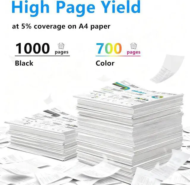 Highest Page YieldUp to 1,000 pages per black ink cartridge and 700 pages per color ink cartridge (5% coverage) A4 paper.