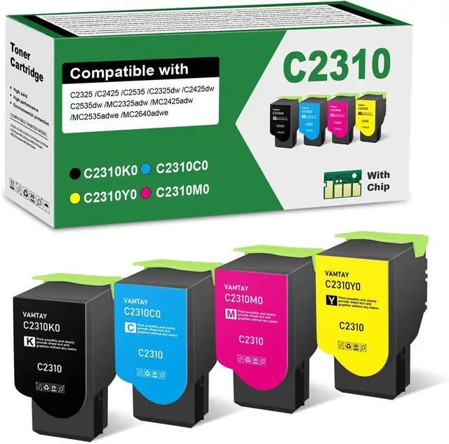 What's in the box: 4 Pack C2310 C2310K0 C2310C0 C2310Y0 C2310M0 Toner Cartridges