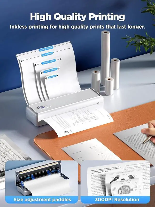 Eco-friendly Inkless Printing: This portable thermal printer eliminates the need for expensive ink, toner, and ribbons. Print recipes, forms, letters, and homework more easily anytime, anywhere. (Note: Only supports thermal paper, not regular copy paper)