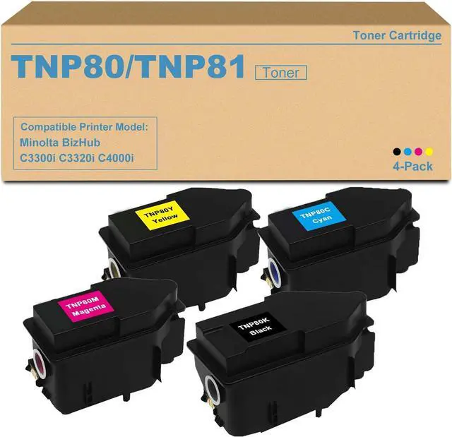 Package Contents: 4 Pack TNP80 TNP81 Toner Cartridge, 1x black AAJW131, 1x cyan AAJW431, 1x magenta AAJW331, 1x yellow AAJW231