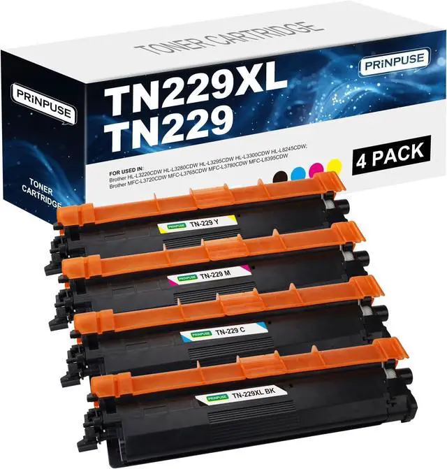 TN229 TN229XL toner cartridges used with: Brother HL-L3220CDW HL-L3280CDW HL-L3295CDW HL-L3300CDW HL-L8245CDW MFC-L3720CDW MFC-L3765CDW MFC-L3780CDW MFC-L8395CDW printers
