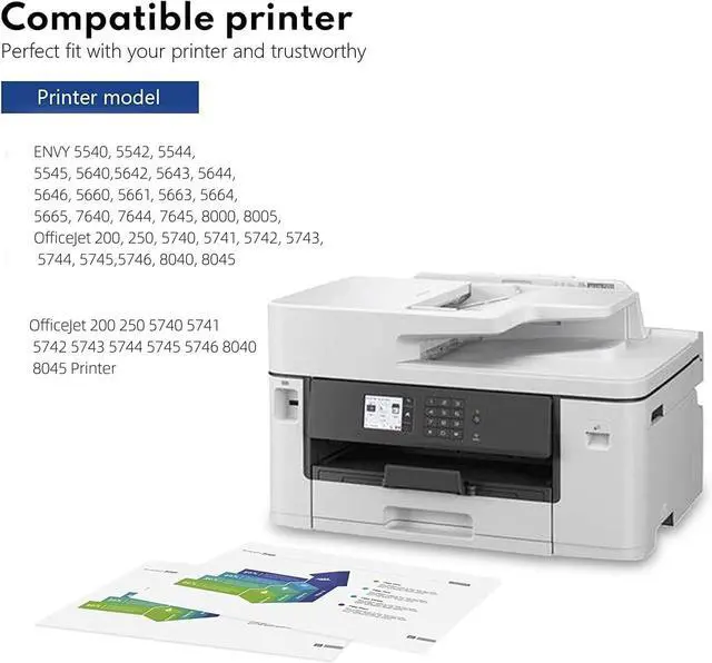Works with ENVY 5540, 5541, 5542, 5543, 5544, 5545, 5547, 5548, 5549, 5640, 5642, 5643, 5644, 5660, 5661, 5663, 5664, 5665, 7640, 7643, 7644, 7645; OfficeJet 5740, 5741, 5742, 5743, 5744, 5745, 5746, 8040; OfficeJet Mobile 200, 250, 258