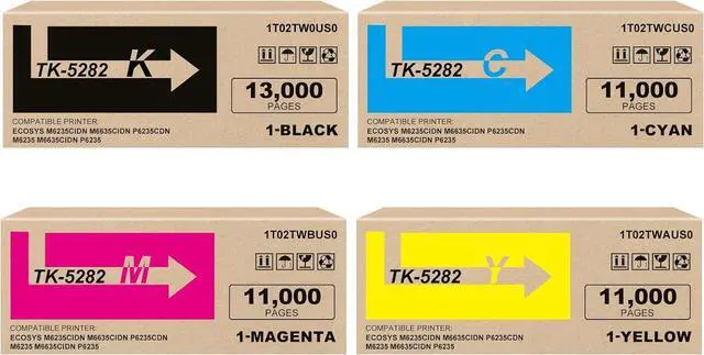 Package Content : 4 Pack TK5282 TK-5282 1T02TW0US0 1T02TWCUS0 1T02TWBUS0 1T02TWAUS0 Toner Cartridge, 1X Black 1X Cyan 1X Magenta 1X Yellow