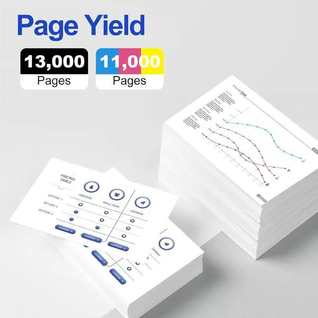Page Yield: 13,000 pages per black, 11,000 pages per color Toner Cartridge at 5% coverage of A4 / Letter