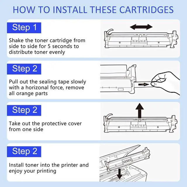 Our toner cartridge deliver the reliable printing results: sharp text, bold blacks, crisp graphics and resists-fading/smudging. Easy to install. Perfect partner with your printer and copier. Perfect compatibility.