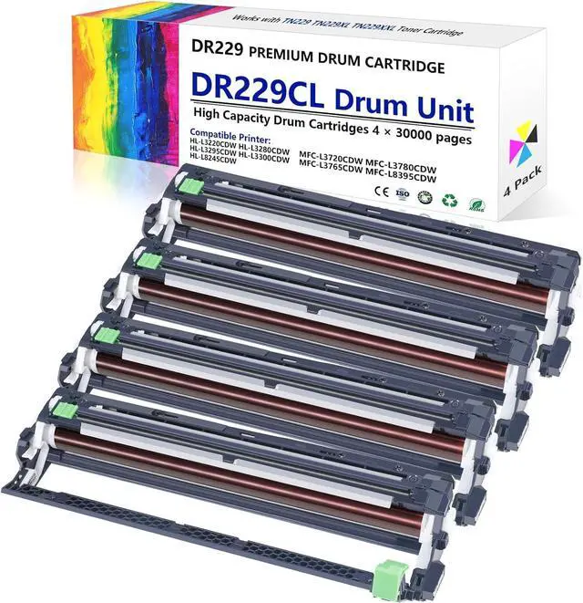 Packing list:4 Pack DR229CL drum unit,any color drum replacement.