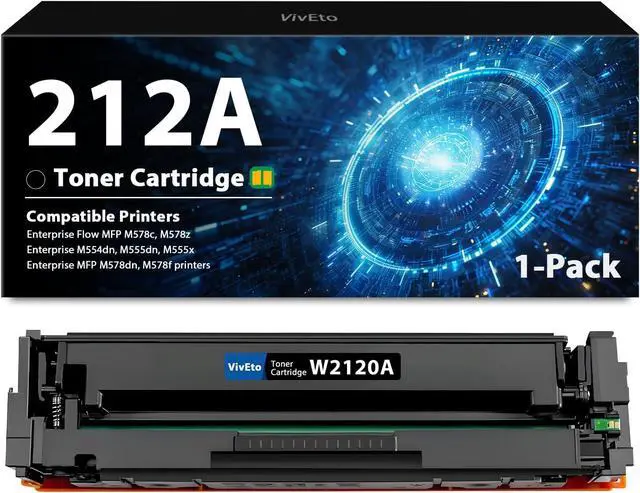 Contents: VivEto toner replacement for HP212A toner cartridge; 1 X 212A W2120A black toner