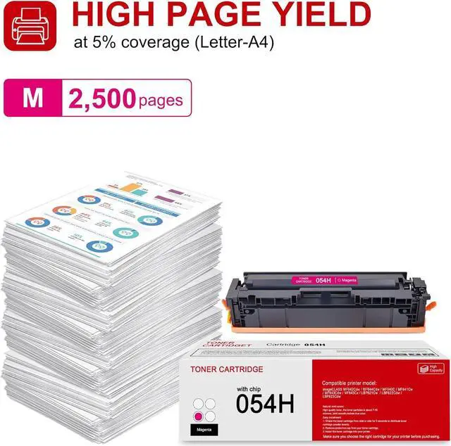 Page Yield: 2,500 pages per CRG-054H M Magenta toner cartridge at 5% coverage.