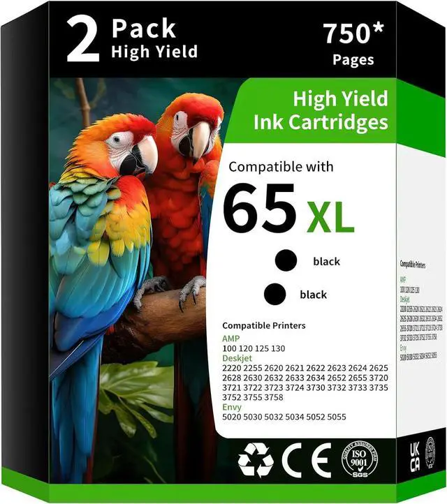 Package Contents: 2 Pack 65XL ink Cartridge Replacement for HP 65XL HP65XL (2 Black)