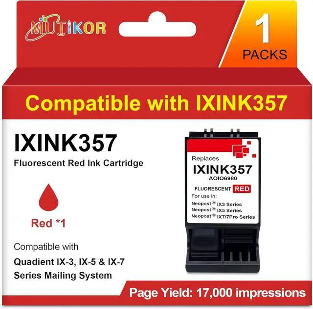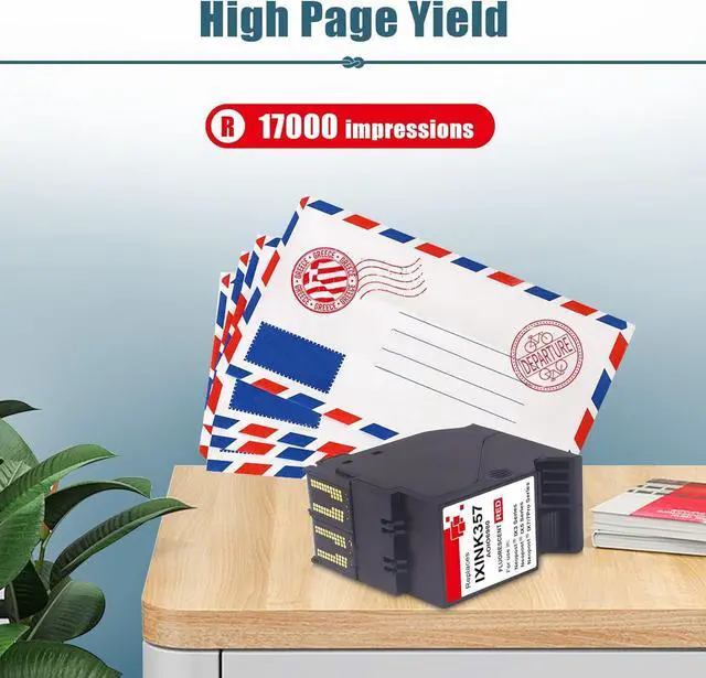 Quality & Performance: IXINK357 ink cartridge for printer offers a high yield of up to 17,000 pages. This cartridge provides a reliable and efficient solution for your Quadient IX3, IX5, and IX7 postage meter machine needs.