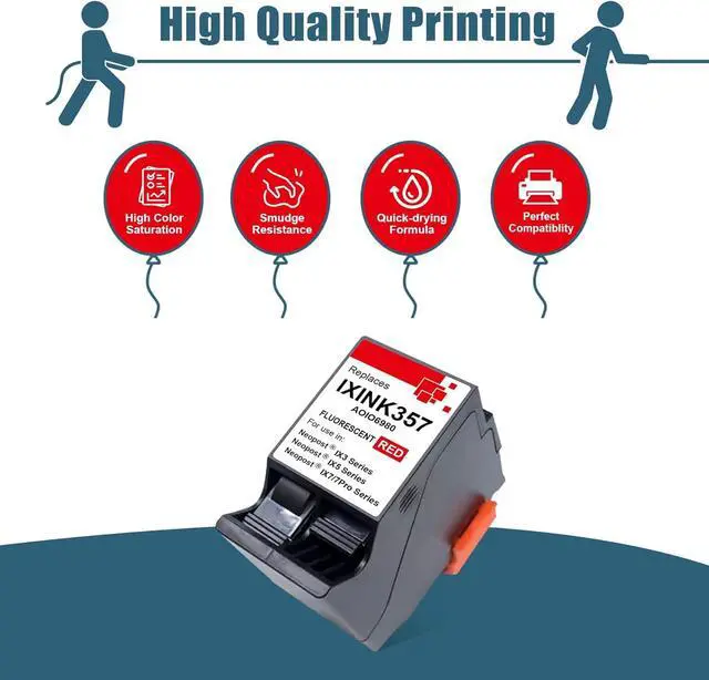 Compatible Printers: The IXINK357 ink cartridge replacement ink cartridge for Quadient Neopost Hasler IX-3, IX-5, IX-7, IX-7 Pro Series postage franking machines.
