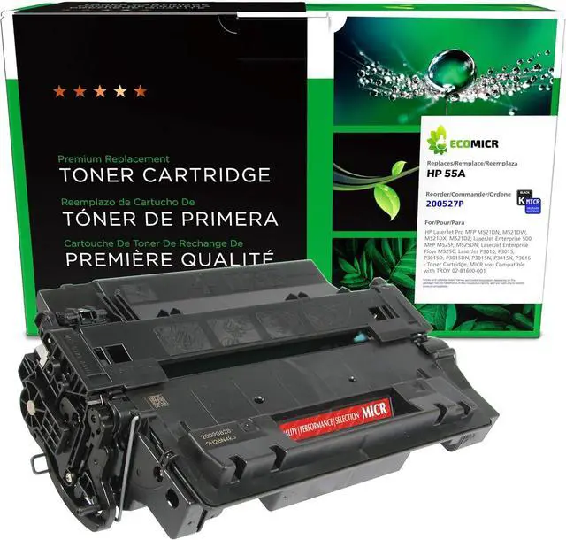 Eco MICR cartridges provide businesses with the quality and reliable MICR needed for check printing while also being an environmentally friendly option for businesses. Each cartridge is manufactured using 89.6% of a recycled HP OEM cartridge and will fit seamlessly with specified HP LaserJet Printers. The MICR toner itself generates strong readability and meets ABA/ANSI compliance standards so no check faces rejection.