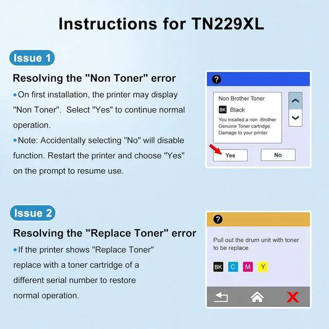 2 Year Worry-Free Warranty: Rest easy with our trusted warranty on every compatible toner TN229XL TN229. If your TN229XL TN229 doesnt perform as expected, well replace itno hassle, no questions