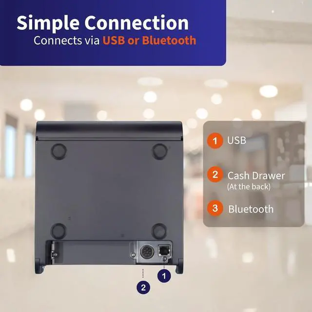 [Connections and Multiple Compatbility]: Connect the printer to hardware with USB or Serial ports; this order printer works with Windows-based POS applications through standard drivers; for systems running on iOS or Android, a software development kit is available to help your specific apps link and print correctly