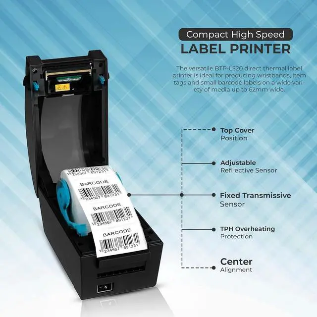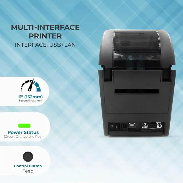 USB Connectivity Simple plug-and-play setup with Windows systems, compatible with most label and POS software platforms.