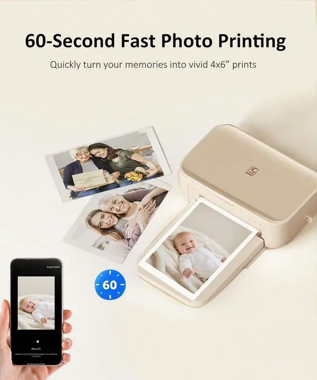 Photo Printer with Waterproof & Long-Lasting Prints: Print stunning 4x6" photos with 300dpi dye-sublimation, reproducing up to 1.7 million colors for vivid, lifelike detail. A built-in protective layer keeps prints waterproof, scratch-resistant, and fade-proofperfect for lasting keepsakes of birthdays, weddings, travel, and family memories.