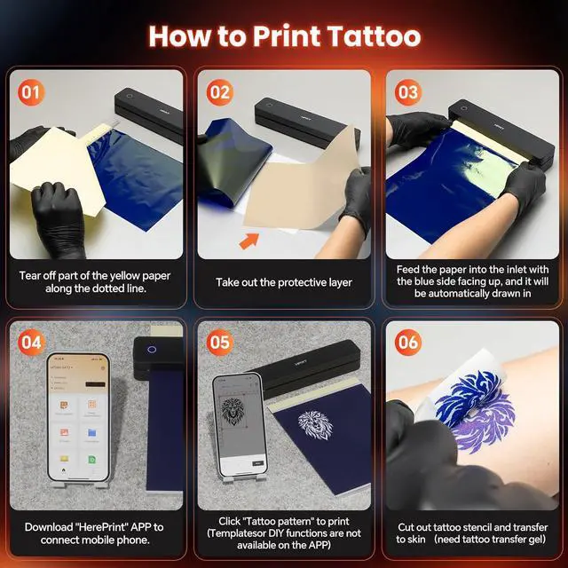 Exceptional Print Quality: Experience stunning clarity with every print. Using advanced thermal technology, this inkless printer produces sharp, high-definition black-and-white outputs with smooth gradients and exceptional detail. For best results, use it to print simple, bold designs with clear outlinesthis ensures higher pixel precision and crisper tattoo transfers. Compatible with various transfer papers, including standard 8.5''x11'' sheets.