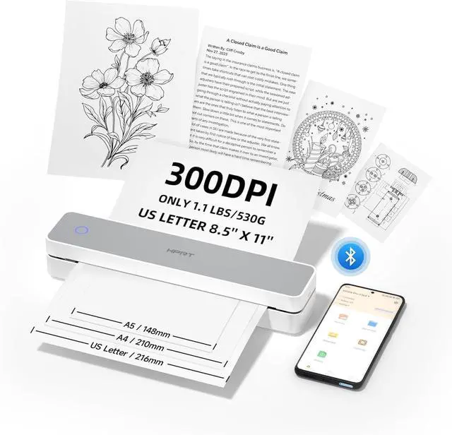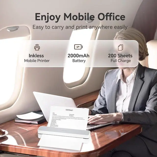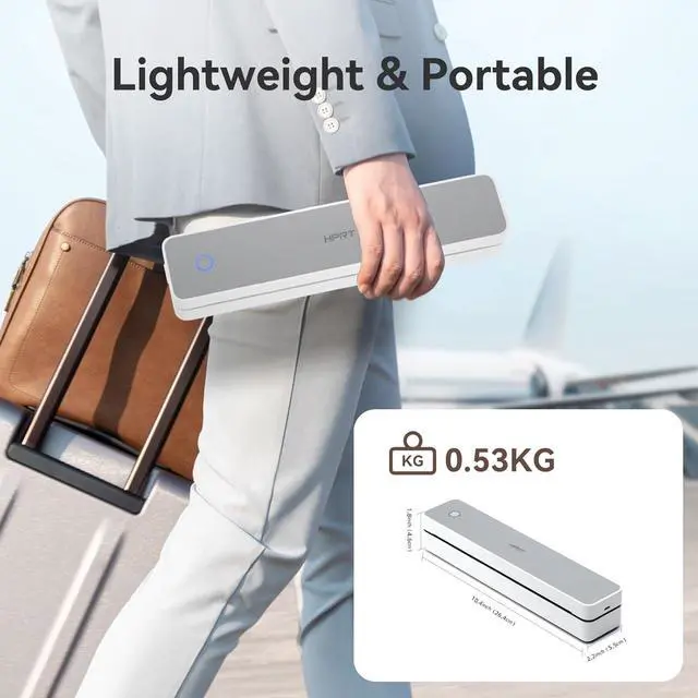 Ink-Free and Superior Printing Quality: Upgraded 300 DPI printing technology and specialized thermal paper for excellent printing quality, there is no need to frequently replace ink, toner, or ribbons anymore, just safely carry in your luggage without worrying about leaking ink