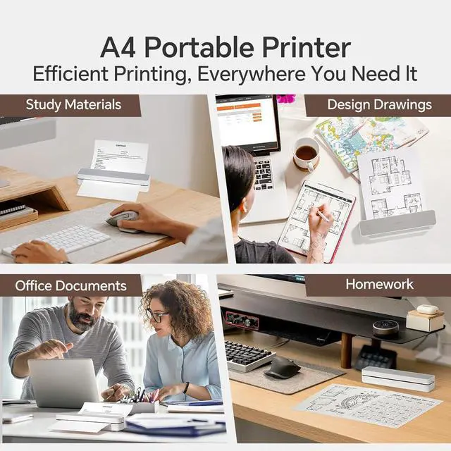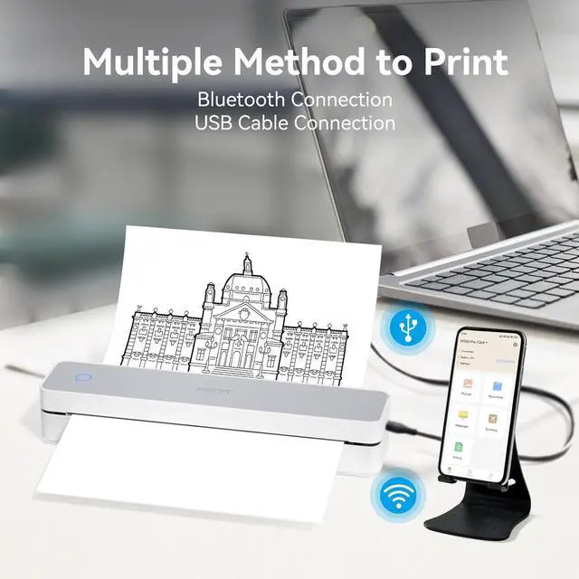 Portable and Print Anywhere: Portable thermal printer for total weight of 530g, which makes it easy to carry around, fit in your bag or briefcase and print anywhere. Great tool for travels, work, business, at home, in the car, or at school