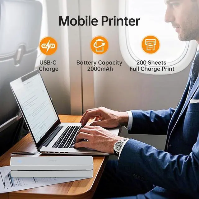 High-Capacity Battery - Our travel printer with 2000 mAh battery can print up to 200 pages on full charge. What a great assistant for mobile office