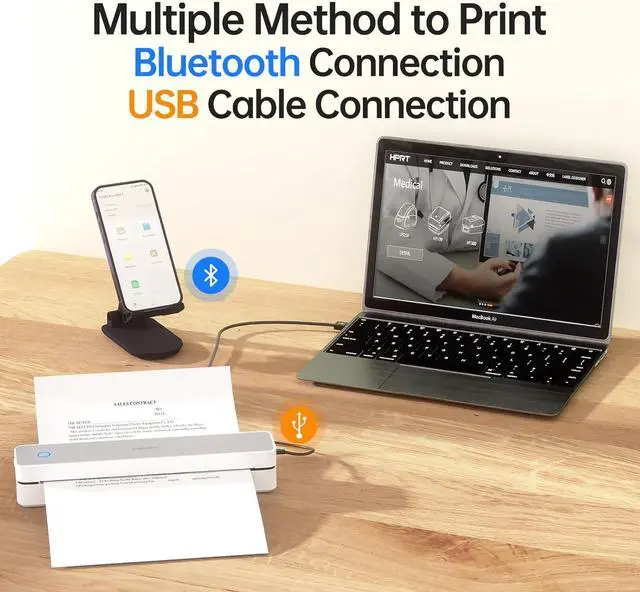 Easy to Use - Portable Thermal Printer supports iOS & Android and PC. For mobile phone, please download our free APP "Hereprint" to Print via Bluetooth. For Laptop or PC, please connect via USB Cable and download the driver from HPRT Website