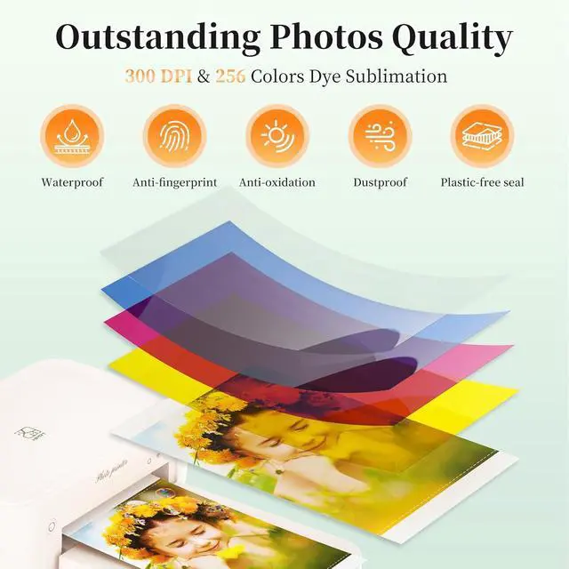 Photos Made To Last - - HPRT Photo Printers with thermal dye-sublimation by which dyes can deeply penetrate the paper, making photos vibrant. It prints in layers of color with a laminating process so its fingerprint proof, water-resistant and fading. Preserve your precious memories forever.