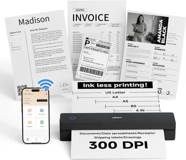 Powerful App Functional Printing The free HerePrint app transforms your phone into a print studio. Edit and print documents, PDFs, web pages, shipping labels, designs, and even photos with 300DPI clarity. This inkless portable printer turns ideas into tangible, high-quality prints instantly, all in sharp black and white.