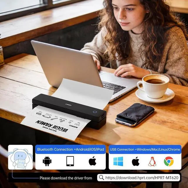 Universal Wireless for All Devices Experience true wireless printing freedom. This portable bluetooth printer connects effortlessly to Windows, Mac, Chrome OS, Linux, Android, and iOS. Print wirelessly via Bluetooth on mobile devices using the HerePrint app, or connect via USB to computers (driver required). A truly versatile wireless thermal printer.