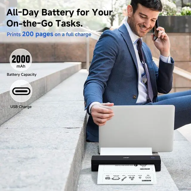 Ultra-Portable Design Your Essential Mobile Office Companion - Weighing only 1.1 lbs and sized at a sleek 10.43" x 2.17" x 1.85", this is the ultimate mini portable printer. Lighter than most laptops and as portable as a water bottle, it slips effortlessly into any bag. Perfect as a travel portable printer for business trips, mobile printer for your car, or a space-saving small portable printer for home and office.