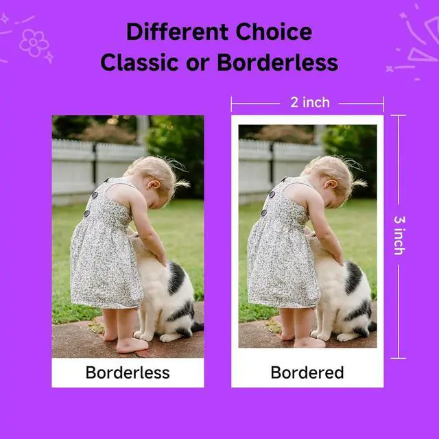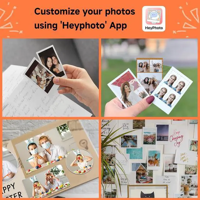[Unlock Creativity]Your printing journey is powered by the free Heyprint app. After a quick pairing, you can instantly print, or first personalize your photos with a wealth of creative tools. Apply filters, add cute stickers and frames, or create collages. The app also offers a unique AR scanning feature that brings your printed photos back to life with digital animation. Choose between bordered prints to handwrite precious notes, or borderless photos for a modern, full-image look.