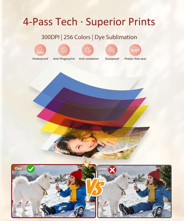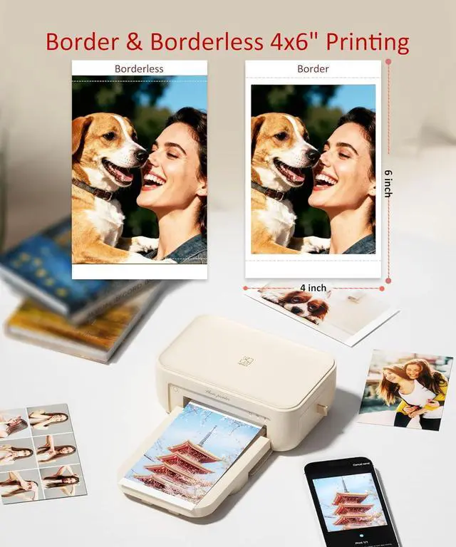 Photo Printer with Waterproof & Long-Lasting Prints: Print stunning 4x6" photos with 300dpi dye-sublimation, reproducing up to 1.7 million colors for vivid, lifelike detail. A built-in protective layer keeps prints waterproof, scratch-resistant, and fade-proofperfect for lasting keepsakes of birthdays, weddings, travel, and family memories.