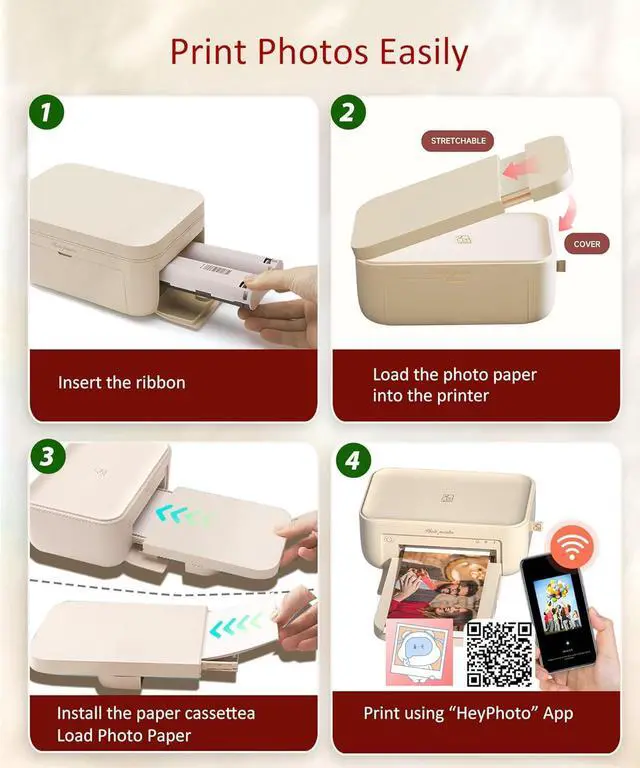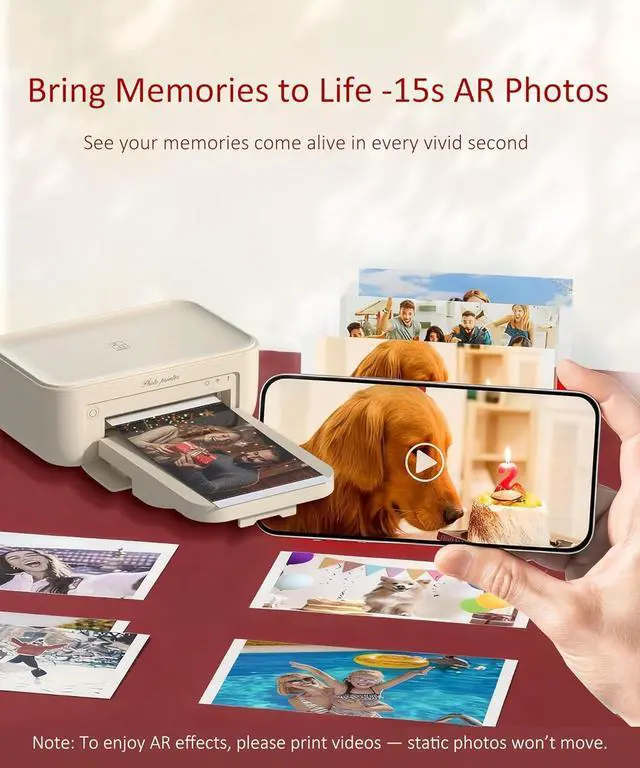 Instant Photo Printer with Full-Featured Free App: Print photos, collages, ID photos, and even AR videos right from your iPhone or Android using the HeyPhoto app. Enjoy a wide variety of templates with simple, step-by-step operationno tech skills required. A fun, fast, and easy way to bring memories to life.