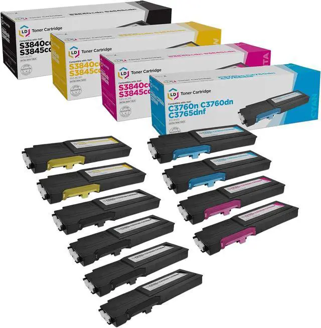 This ItemLD Products Compatible Toner Cartridge Replacements for Dell Color Laser C3760 C3765 Extra High Yield (4 331-8429 Black, 2 331-8432 Cyan, 2 331-8431 Magenta, 2 331-8430 Yellow, 10-Pack)RecommendationsLD Products Compatible Toner Cartridge Replacements for Dell Color Laser C3760 C3765 Extra High Yield (331-8429 Black, 331-8432 Cyan, 331-8431 Magenta, 331-8430 Yellow, 4-Pack) LD Products Compatible Toner Cartridge Replacement for Dell Color Laser C1760nw, C1765nf, C1765nfw, 1250C, 1350cnw, 1355cn, 1355cnw High Yield (2 Black, 1 Cyan, 1 Magenta, 1 Yellow, 5-Pack) Inktoneram C2660dn C2665dnf Compatible Toner Cartridges Replacement for Dell C2660dn / C2665dnf 593-BBBU 593-BBBT 593-BBBS 593-BBBR High Yield ([Black, Cyan, Magenta, Yellow], 4-Pack) LD Products Compatible Toner Cartridge Replacements for Dell Color Laser C3760 C3765 Extra High Yield (2 331-8429 Black, 1 331-8432 Cyan, 1 331-8431 Magenta, 1 331-8430 Yellow, 5-Pack) LD Products Compatible Toner Cartridge Replacement for Dell Laser H625 & H825 (Black, Cyan, Magenta, Yellow, 4-Pack) Compatible with Dell H625cdw, Dell H825cdw, Dell S2825cdn