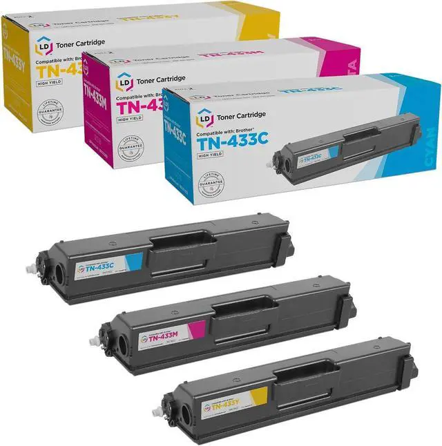 This ItemLD Products Compatible Toner Cartridge Replacements for Brother TN433 High Yield (Cyan, Magenta, Yellow, 3-Pack) for use in HL-L8260CDW, HL-L8360CDW, HL-L8360CDWT, HL-L9310CDW, MFC-L8610CDWRecommendationsLD Products Compatible Toner Cartridge Replacements for Brother TN433 High Yield (2 Black, 1 Cyan, 1 Magenta, 1 Yellow, 5-Pack) for HL-L8260CDW, HL-L8360CDW, HL-L8360CDWT, MFC-L8610CDW, & MFC-L8900CDW GOTOBY Compatible Toner Cartridge Replacement for Brother TN436 TN 436 TN436BK TN433 TN431for Brother HL-L8360CDW HL-L8260CDW MFC-L8900CDW MFC-L8690CDW Printer (Cyan, Yellow, Magenta, Black, 4 Pack) TN-331 TN331 Toner Cartridges 3