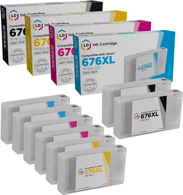 This Packages Includes the following Compatible Cartridges: 2 x Epson 676XL Black ink T676XL120, 2 x Epson 676XL Cyan ink T676XL220, 2 x Epson 676XL Magenta ink T676XL320 & 2 x Epson 676XL Yellow ink T676XL420