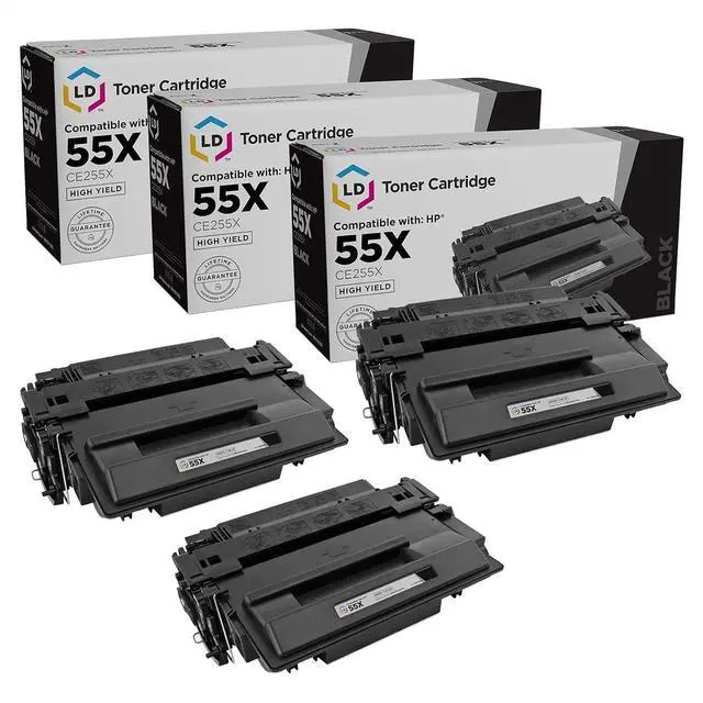 Package Includes: 3 pack of HP CE255X compatible toner cartridge / 55x black