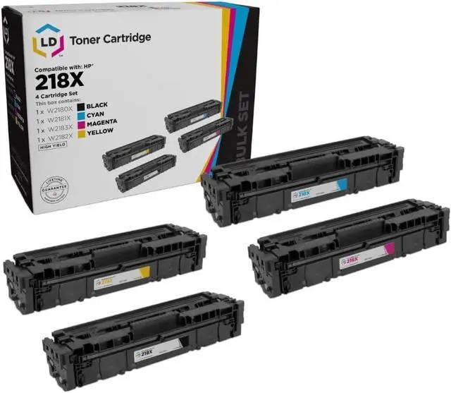 4 x Compatible with HP 218X 218 Set HY (4-Pack, Black W2180X, Cyan W2181X, Magenta W2182X, Yellow W2183X) toner cartridges compatible with HP 218X HP-218X. Not OEM Cartridges.