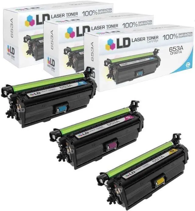 The following Compatible Cartridges are Included: 1 HP 653A CF321A Cyan | 1 HP 653A CF323A Magenta | 1 HP 653A CF322A Yellow