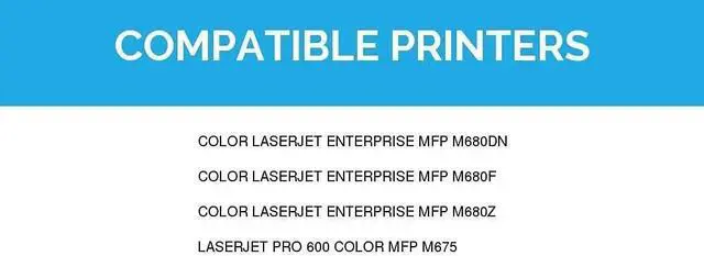 Compatible with: HP Color LaserJet | Color LaserJet Enterprise | Enterprise | LaserJet | LaserJet Enterprise: MFP M680dn, MFP M680f, MFP M680z | LaserJet Pro 600 Color MFP M675
