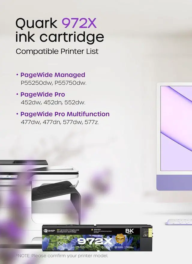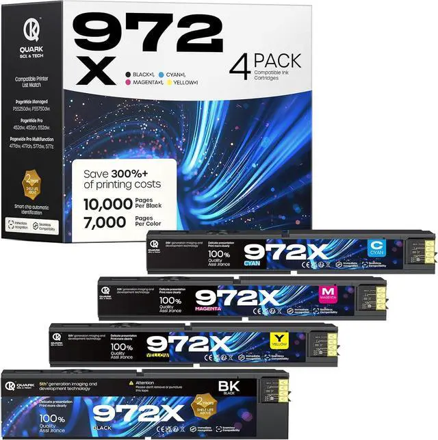 • High Printer CompatibilityQuark 972X ink cartridges compatible with hp pagewide pro 477dw, 577dw, 452dw, 552dw, 477dn, 452dn, 552dn, pageWide pro multifunction 577z and pagewide managed p55250dw printers.