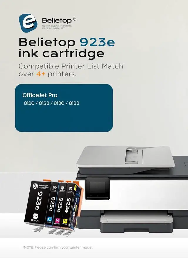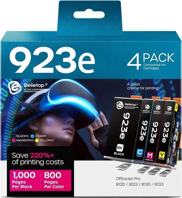 923e 923XL 923 Ink Cartridges Replacement for HP OfficeJet Pro 8120 8123 8130 8133 Printers-High Pages Yield (4 Pack, BK/C/M/Y)